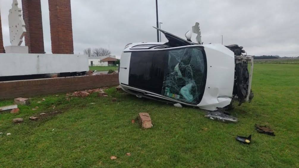 En el auto viajaban dos hombres, ambos de 28 años, oriundos de Fortín Olavarría, embistió el arco de entrada a la ciudad de América, distrito de Rivadavia.