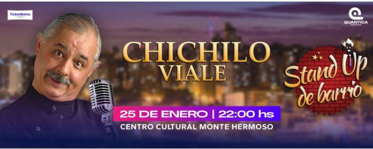 El reconocido humorista y actor Chichilo Viale llegará este domingo 25 a Monte Hermoso con su espectáculo "Stand Up de barrio", una propuesta ideal para disfrutar en familia y reírse de las situaciones cotidianas de la vida.